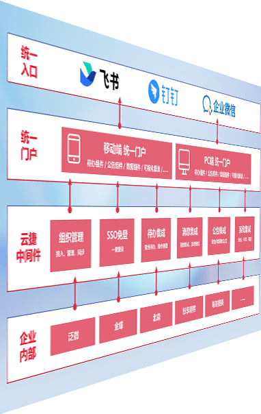 对协作平台提供支持服务,,支持企业应用与协作平台对接,,,,包含组织同步、、、消息集成、、、、待办集成等。。。支持目前主流的协作平台:钉钉、、企微和飞书。。